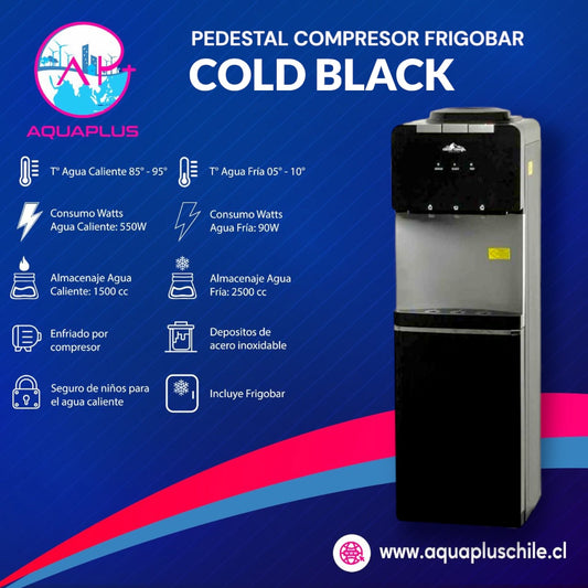 PEDESTAL COLD BLACK CON FRIGOBAR + 2 BIDONES (incluye envases retornable)